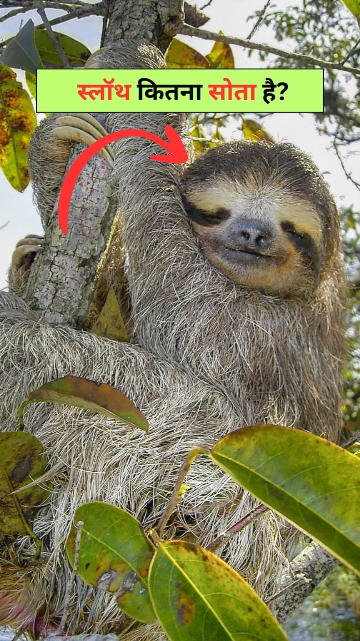 जंगली स्लॉथ पेड़ों पर लटककर लगभग 10 घंटे सोते हैं। धीमी चाल और कम एनर्जी की वजह से ये ज़्यादा आराम करते हैं।